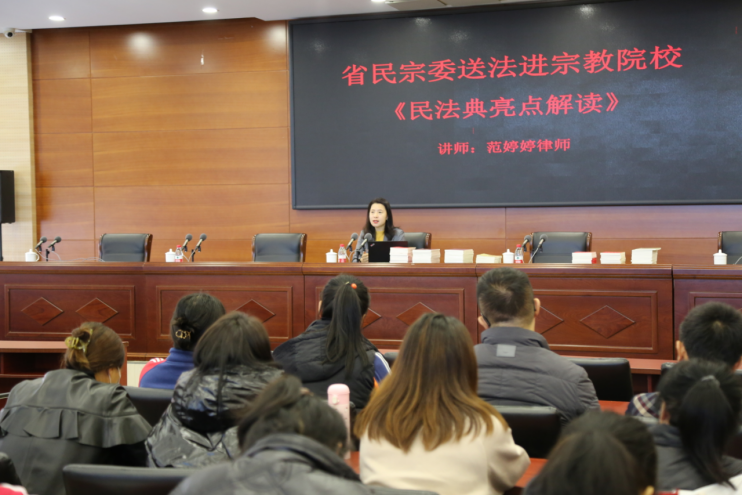 活动还邀请了华谦律师事务所高级合伙人、哈尔滨市律师协会婚姻家庭专业委员会副主任范婷婷律师,为黑龙江神学院的100余名师生讲授了“民法典亮点解读”的课程。范婷婷律师重点介绍了《中华人民共和国民法典》当中涉及不同年龄段可能会遇到的法律问题,并且结合办案经历讲解有关法律知识点,通过问答互动环节,回答了学生关切的法律问题。