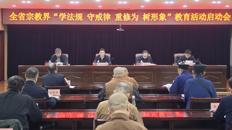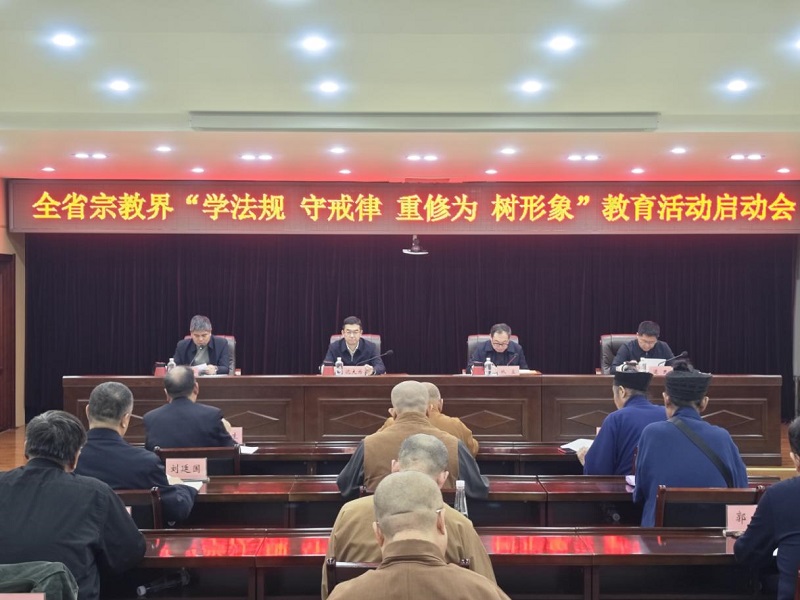会议强调,宗教界开展“学法规、守戒律、重修为、树形象”教育活动是坚持我国宗教中国化方向、促进我国宗教健康传承的必然要求,对全面贯彻落实党中央关于宗教工作的决策部署、推动全面从严治教具有重要意义。全省宗教界要发挥主体作用,聚焦主题主线,准确把握教育活动的目标任务和具体要求,精心组织、周密部署,做到全员覆盖、全员参与。要坚持问题导向,聚焦匡正教风、治理乱象,采取台账式管理、项目化推进、阶段性落实的方式,着力解决影响宗教健康传承的突出问题,教育引导全省宗教界人士守法遵规、提高宗教修为,树立宗教界爱国爱教、正信正行、清静庄严的良好形象。