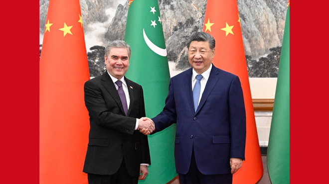 习近平指出,前不久中国全国两会成功召开,审查批准了“十五五”规划纲要。规划纲要的实施将为中国基本实现社会主义现代化奠定坚实基础,也将惠及世界各国。土库曼斯坦独立35年来,走出一条独立自主、符合自身国情的发展道路。马年伊始,中方愿同土方共商合作大计,共享发展机遇,推动中土命运共同体建设不断走深走实。