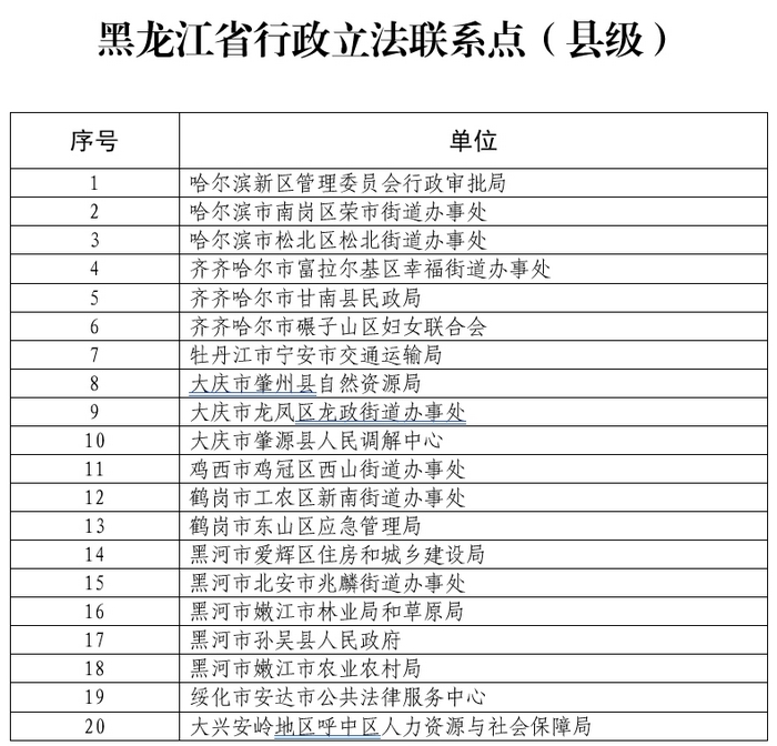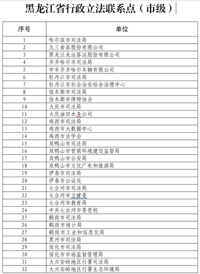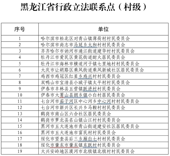 附件:黑龙江省行政立法联系点(省级、市级、县级、乡级、村级)