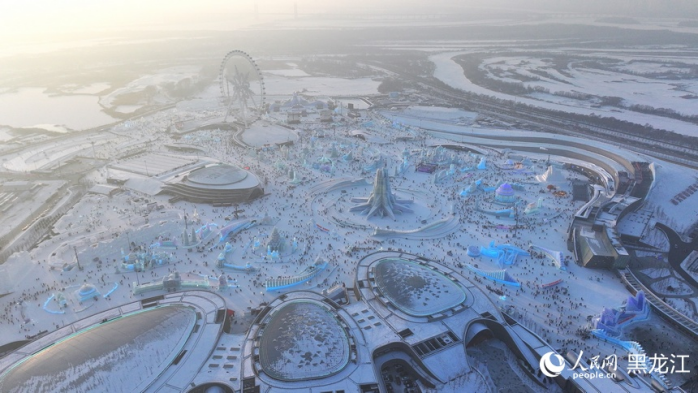 哈尔滨冰雪大世界全貌。人民网 徐成龙摄
