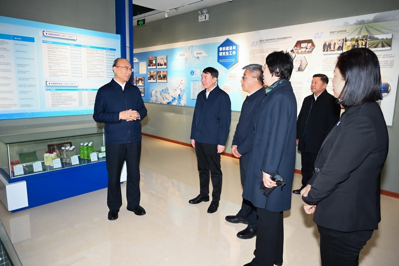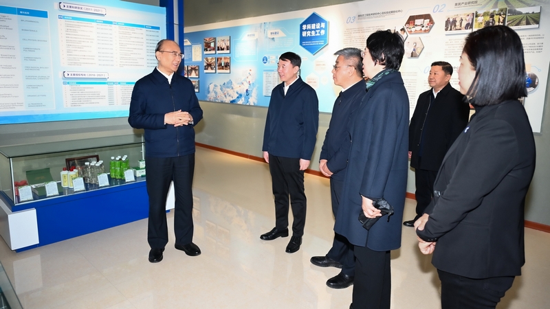 在科技成果转化中心,许勤了解学院保健食品、功能饮品开发等情况。